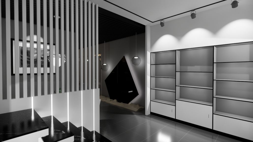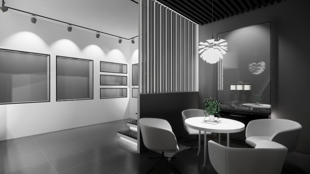 設計思路:采用開放式的空間布局,通過合理的空間劃分和流線設計,營造通透、寬敞的展示環境。金屬線條引導:利用金屬線條或框架,在空間中進行巧妙的引導和劃分,形成有序且富有動感的展示區域。