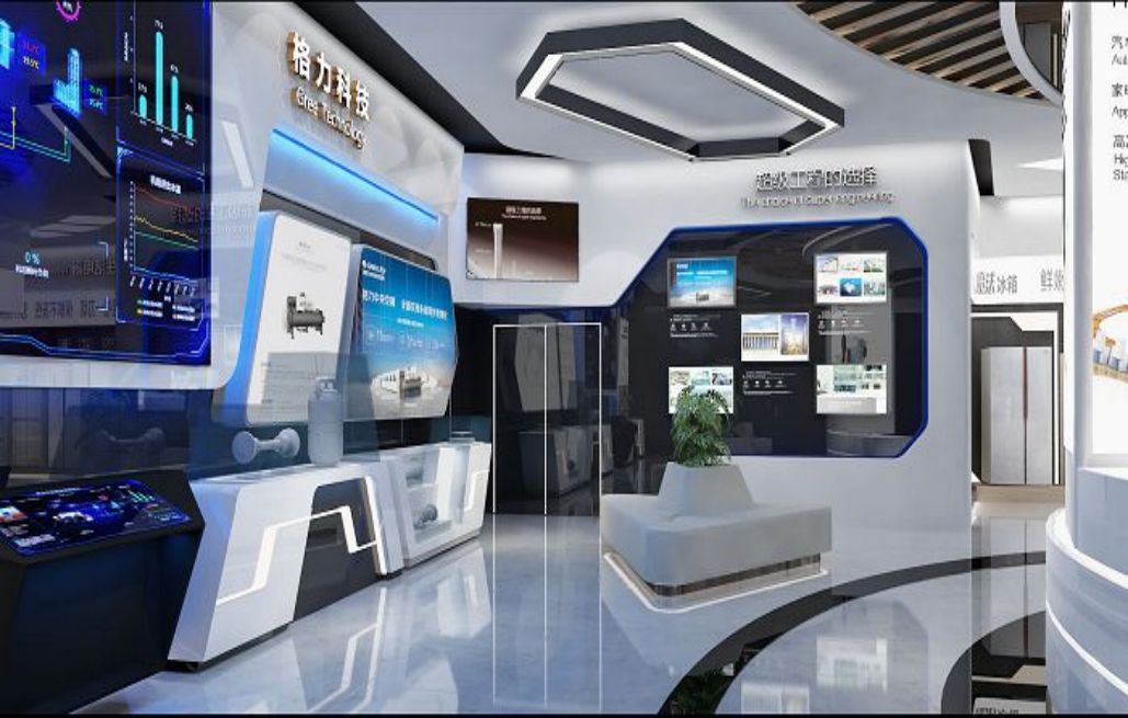 設(shè)計(jì)思路:在白色基調(diào)的基礎(chǔ)上,可以運(yùn)用不同質(zhì)感的白色材料,如啞光白、亮光白、紋理白等,增加展廳的層次感和立體感。同時(shí),合理布置舒適的座椅和休息區(qū)域,為參觀者提供一個(gè)舒適而高端的觀展環(huán)境。通過優(yōu)質(zhì)的觀展體驗(yàn),增強(qiáng)參觀者對(duì)格力電器品牌的認(rèn)知和好感度。
