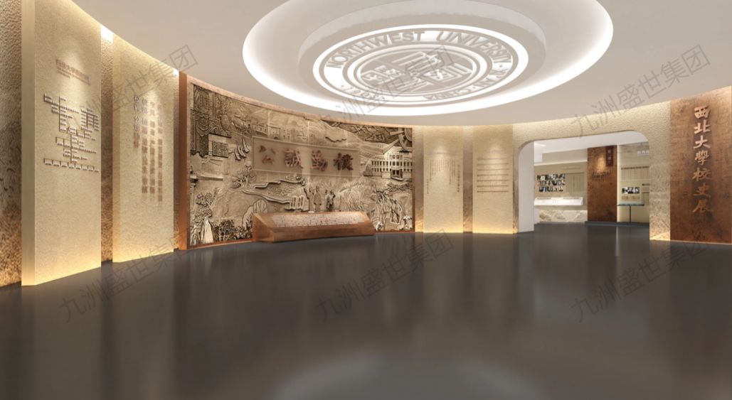 設計思路:以卡其色為主色調,營造沉穩而莊重的氛圍,彰顯西北大學悠久的歷史與深厚的文化底蘊。通過圖文、實物等展示形式,講述學校的發展歷程與輝煌成就。同時,融入傳統元素,打造具有西北特色的展示空間,讓參觀者感受學校的獨特魅力。