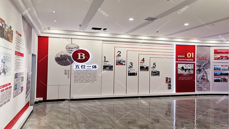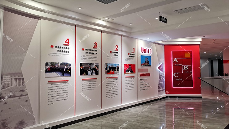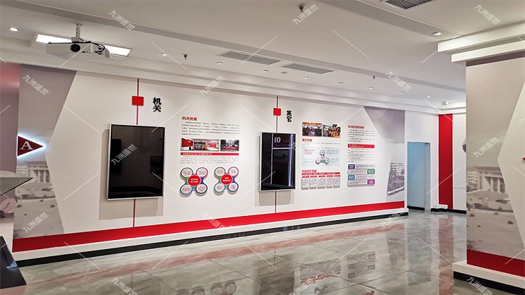 設計思路:通過設置主題墻或主題展區(qū)來集中展示,同時輔以多媒體設備播放相關視頻或音頻資料,使參觀者能夠直觀地感受到黨建文化的深厚底蘊。此外,展廳的內容應豐富多樣,涵蓋黨的歷史、黨的成就、黨的優(yōu)良傳統(tǒng)和作風等方面,可以通過圖文結合、實物展示、場景再現(xiàn)等方式來呈現(xiàn)。